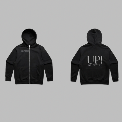 SQUABBLE UP HEAVY ZIP-UP HOODIE.